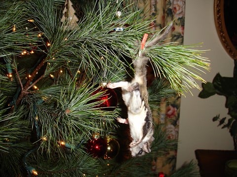How we decorated our tree. Even our cat, Chloe got into the act, presenting this odd little ornament on the doorstep.